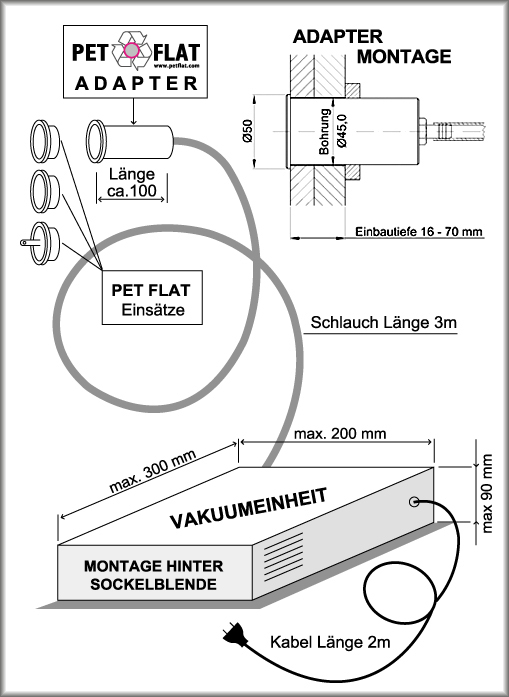 Saugbetrieb wird durch den PET FLAT Adapter jede Flasche flach gemacht, im
